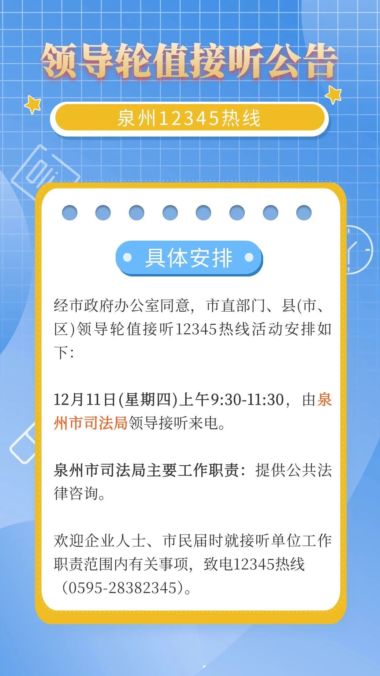 泉州市司法局领导轮值接听12345热线-澳门太阳集团城welcome